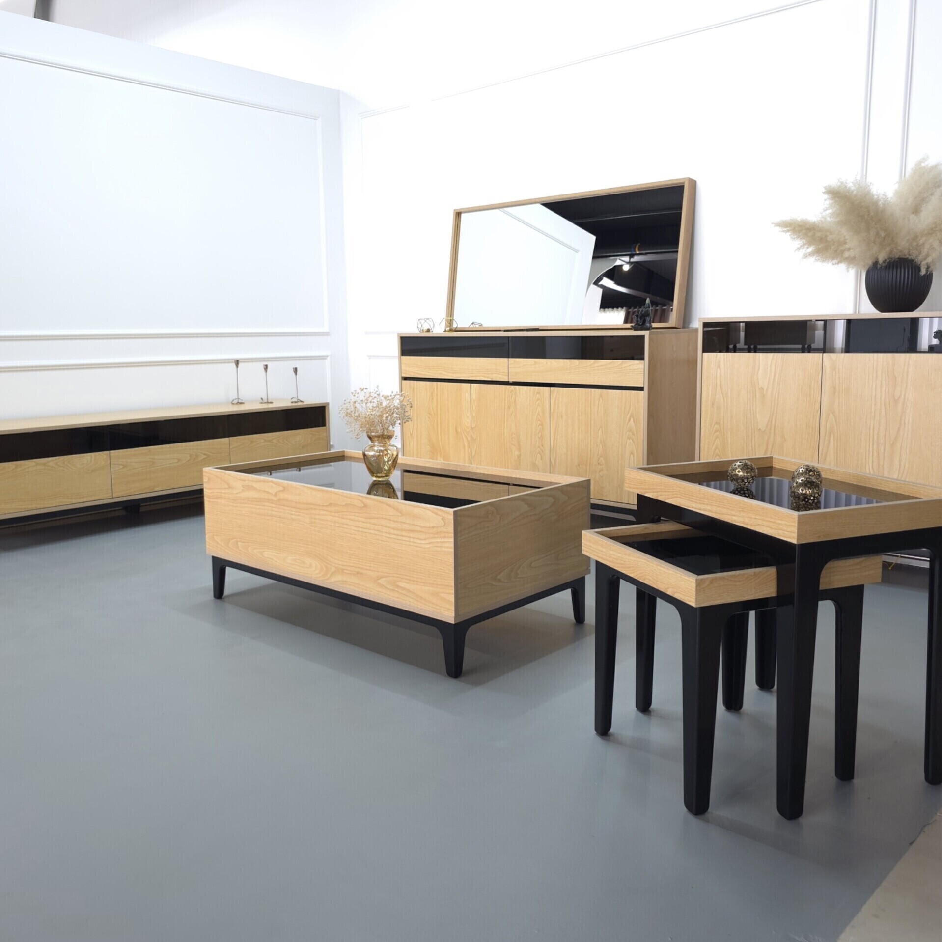 جلومبلی و عسلی مدرن گلدن با طراحی مینیمال و جزئیات طلایی در پایه‌ها و یراق‌آلات، جلوه‌ای لوکس و چشم‌نواز به فضای نشیمن می‌بخشد. ترکیب زیبایی، دوام بالا و کاربرد هوشمندانه، این مدل را به یکی از پرفروش‌ترین محصولات مدرن تبدیل کرده است.